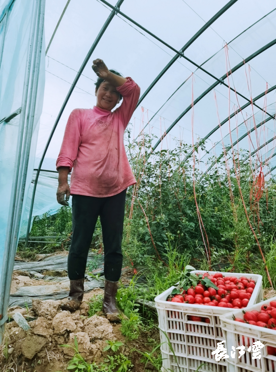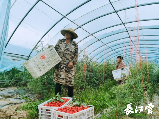 螺丝椒、圣女果、红椒......54岁的菜农彭大珍在塑料大棚里埋头采摘,争分夺秒为的是多挣几个工分。而每个月在家门口赚到不低于3千元的帮工收入,让她倍感满足。