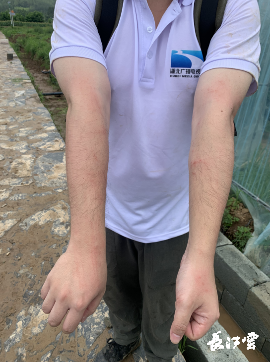 雨霁天青,户外凉风习习,为了找寻上湾村里的果蔬采摘能手,湖北广电主播黄威一头扎进了蔬菜大棚。里外10摄氏度以上的温差,让他的脑门上瞬间沁出密密的汗珠;而皮肤过敏更让他萌生退意。