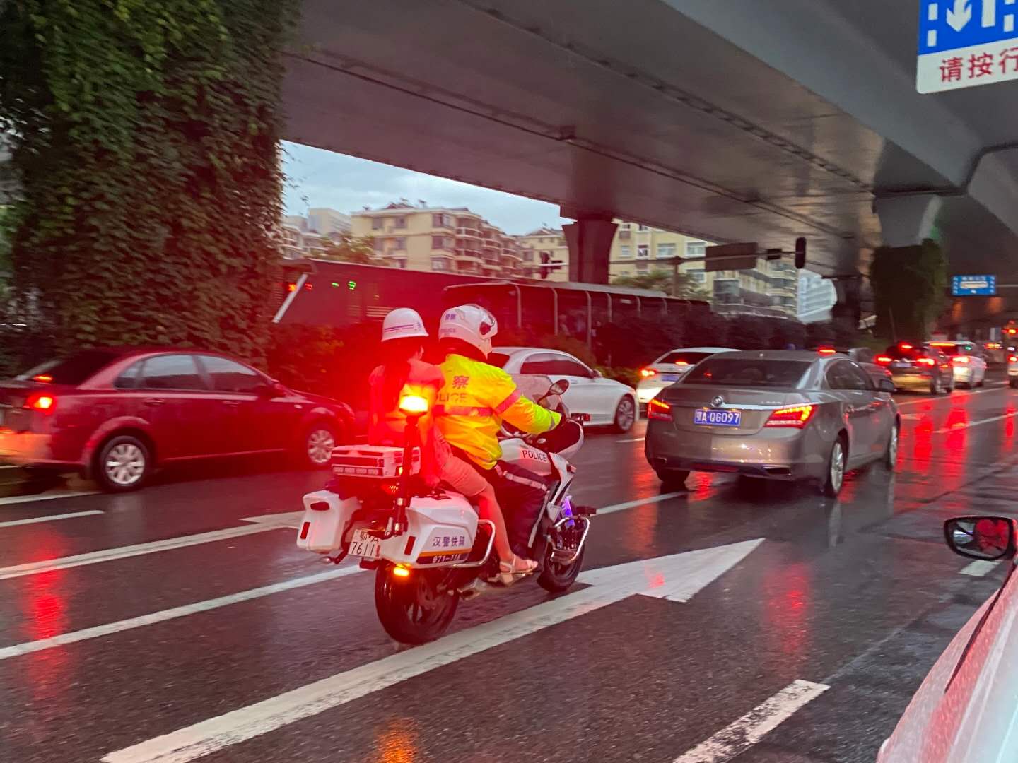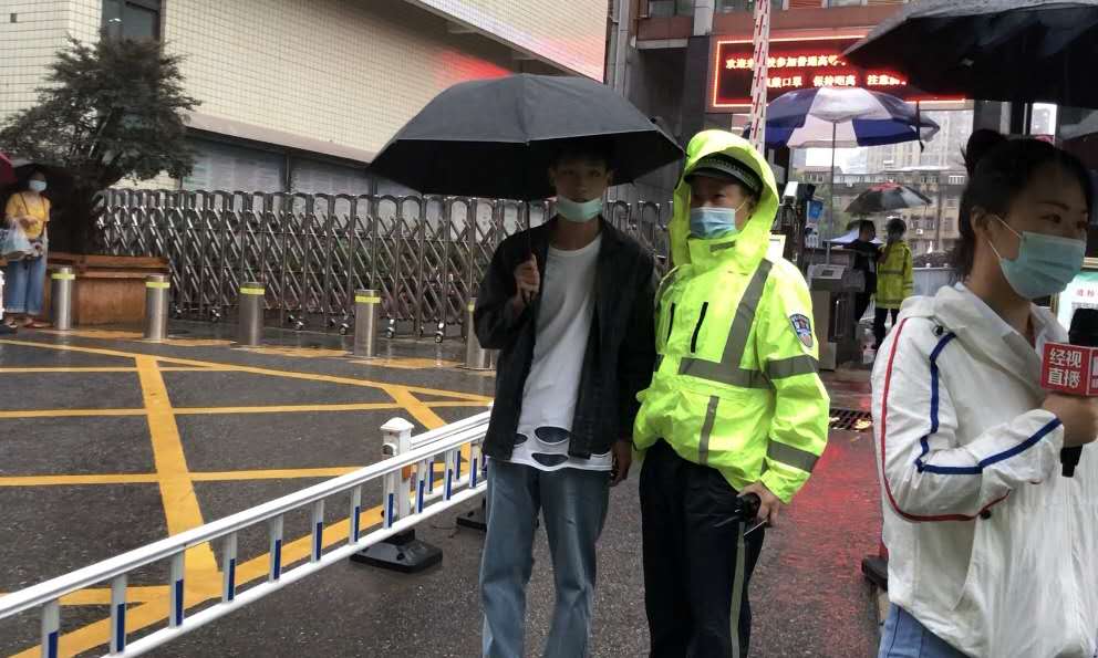 7月7日8时37分,正在熊家嘴路口执勤的民警代大胜接到考生求助,因为暴雨的原因这名考生一直没打到车,眼看着马上就要迟到了,十分焦急,考点位置在关山中学。
