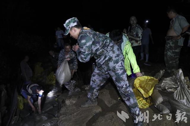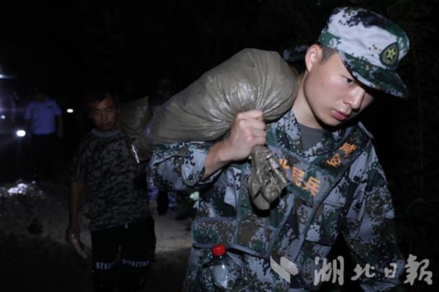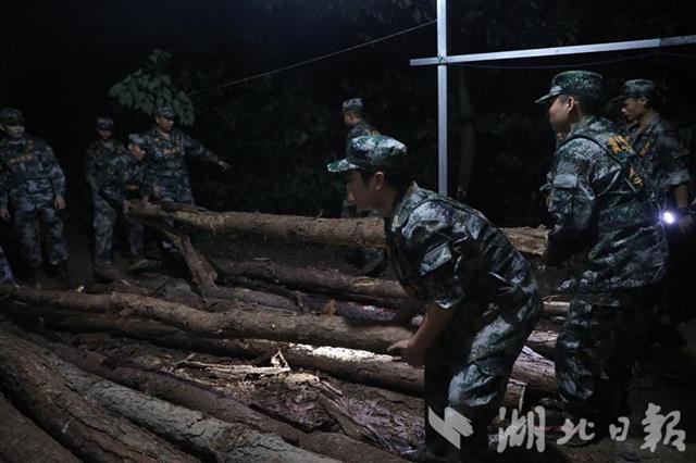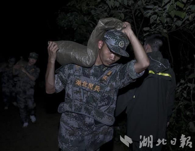 19时30分,咸安区人武部紧急出动30名民兵到达现场。