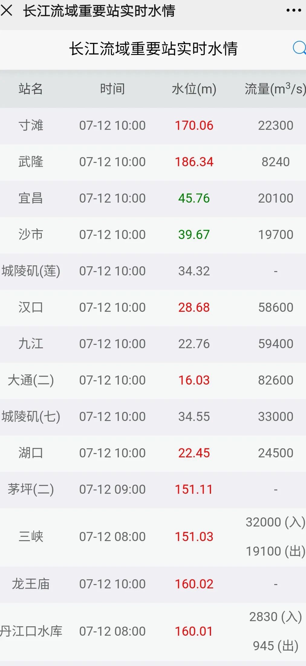 为了缓解长江中下游的防洪压力,三峡水库逐步开始减小下泄流量。11日20时,三峡水库下泄流量为18900 m³/s,比5日20时的35000 m³/s减小了近一半。