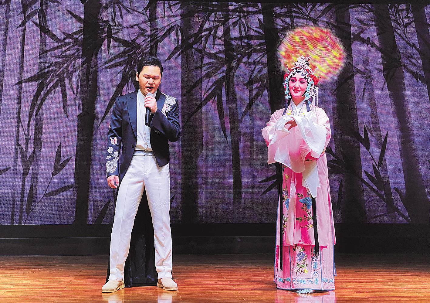 武汉市两位青年演员跨界表演歌曲《唐诗宋词》。(省群艺馆供图)