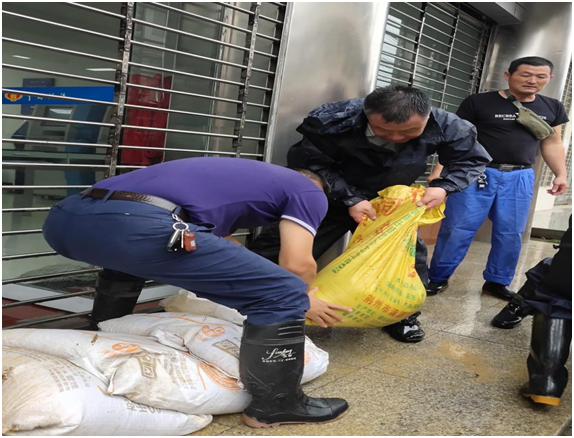 7月6日至7日,位于洪湖西北边陲的府场镇遭受连日大暴雨,日降雨量高达262.5mm,各条街道受到不同程度的水淹,府场税务分局办公区也未能幸免,很快院子里的水就漫过台阶进到办税服务厅内。为了防止办公设备受损,保证办税服务厅能够正常办税,府场税务分局局长蔡历佳迅速行动,带领干部职工冒雨运沙、装袋进行抢险围阻,为办税服务厅建起了一堵防护墙。