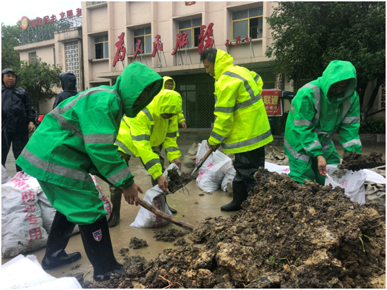 7月8日凌晨,在已派出第一批上堤突击队员的情况下,龙感湖税务分局党支部紧急动员在家党员干部展开排涝抢险。由于时间紧急,沙袋、雨衣、雨鞋等物资还只能供应上堤人员。“没有条件,就创造条件。”没有沙袋,大家就利用分局绿化带泥土,现场制作沙袋;没有雨鞋,大家就光着脚踩在泥中。铲土、装袋、拖运、垒堤,数十名税务干部流水线作业,现场热火朝天,有条不紊。经过8个小时不间断奋战,下午3点,终于成功在地下车库和水电库房搭筑子堤,顺利完成分局办公楼及院内积水排除,恢复了指挥部的水电供应。