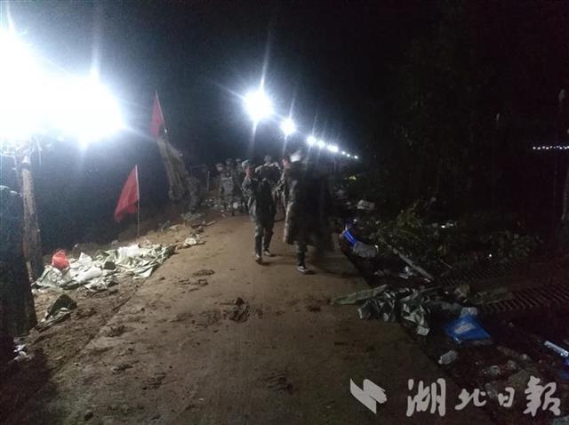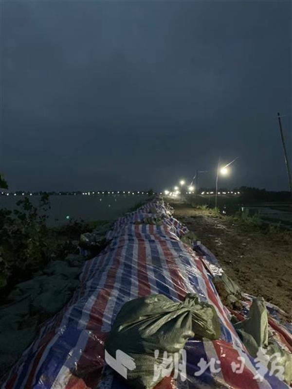 夜晚,风雨交加,5公里的圩堤上灯火通明,抢险民兵们挑灯夜战,200余名民兵斗志昂扬。至晚上10点,经过大家共同努力,全长5公里的血防圩堤,已全部加高80厘米,部分低洼地段也铺上防水彩条布,高度与其他堤段齐平,确保了堤坝的安全。