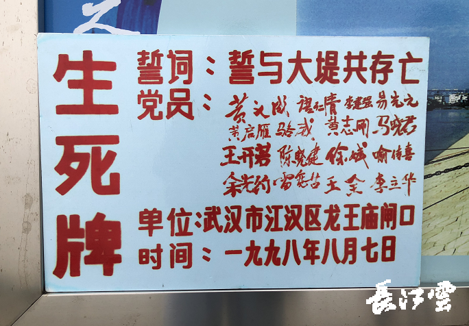 龙王庙自古就是汉口防洪的关键,新中国成立以后,武汉已经遭遇过1954年、1998年、2016年三次特大洪水,龙王庙被列为武汉防汛最险地段。唐仁清回忆说,1998年、1999年、2016年,抗洪抢险人员三次在龙王庙闸口立下“生死牌”,誓与大堤共存亡。1998年,武汉遭遇特大洪水,当时水位最高的时候,离地面已经有一米五到两米的距离,龙王庙附近多处出现散浸,如果发展到管涌,大堤随时会有脱坡的危险,洪水会瞬间进入武汉市中心。当时作为党员,唐仁清和其他15名党员,签下生死牌,宣誓用生命保护大堤和武汉人民的安全。他们用沙袋等工具对一些管涌或渗水的险情进行处置。那一年,他近三个月没回家,一直值守大堤。