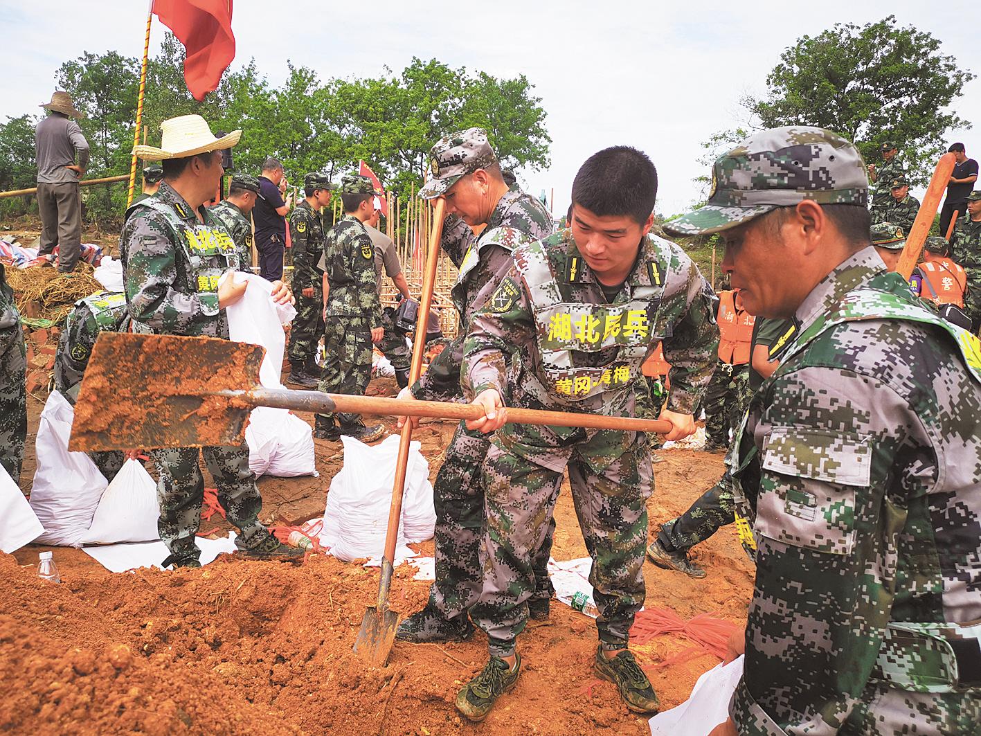为应对洪水险情,目前湖北省军区已协调驻鄂部队5000余名官兵和2000多名民兵,分赴武汉、黄冈、孝感、荆州等地,多点多地展开抢险救援。