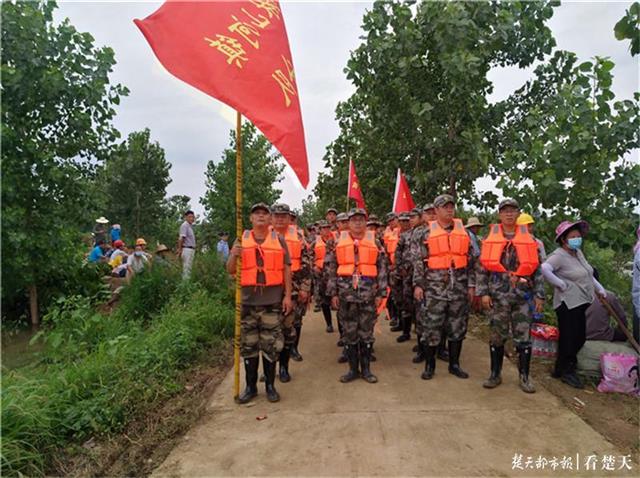 7月12日下午15时,团风人武部组织200余名民兵在团风镇血防堤魏家湾村段险情。