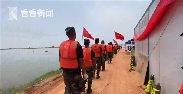从洪水险情发生以来,大量武警和消防官兵前来增援。在永修县的九合乡,从鹰潭来此增援的武警支队已经连续奋战三天两夜,一天处理了堤坝上九处管涌,非常辛苦。尤其是下水前还要涂抹药物,以防感染吸血虫病。