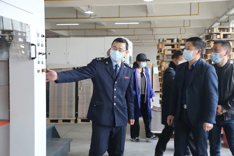 图为松滋市税务局党委书记、局长夏蔚平到企业走访考察
