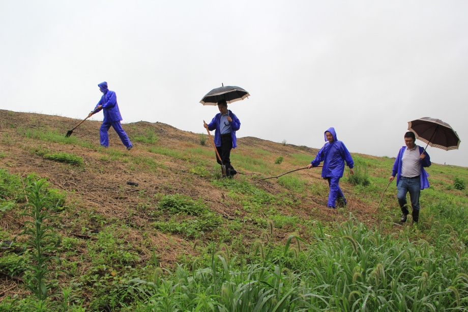 图为阳新县税务局防汛突击队员在巡查和巩固堤防