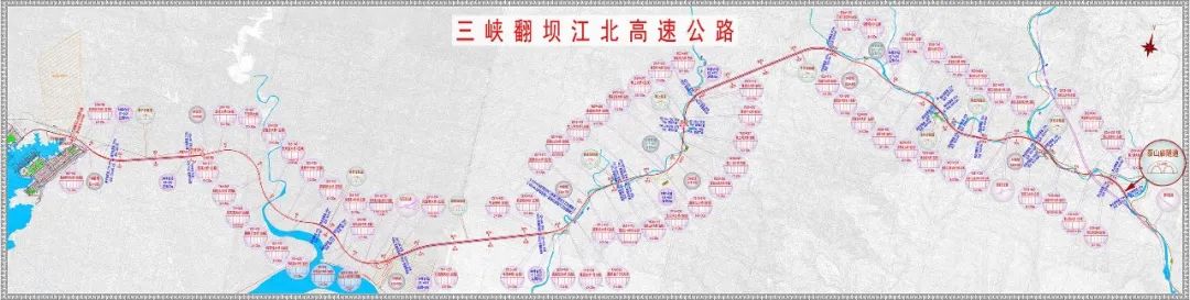 三峡翻坝江北高速公路是三峡综合交通运输体系的重要组成部分,也是湖北省“九纵五横三环”路网建设的重点项目之一,全长约36公里。起于太平溪镇富村坪,接太平溪港连接线,在张家口设匝道互通接宜兴公路,主线继续向前止于新坪,与沪蓉高速公路宜巴段相接。