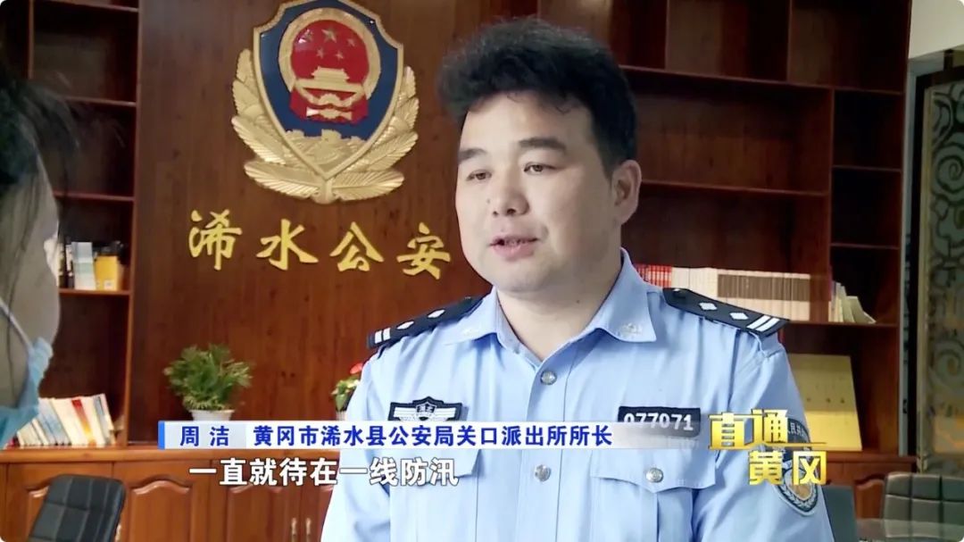 黄冈市浠水县公安局关口派出所所长 周洁:他除了处理平常的接处警以外,他病倒了的那天白天依然还在大坝上值守。