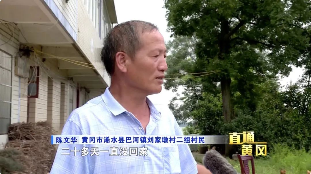 黄冈市浠水县巴河镇刘家墩村二组村民 陈文华:他是对面的一个村子的,摩托车骑过来,二十多天一直没回家,他摩托车放在我后面的小院里。
