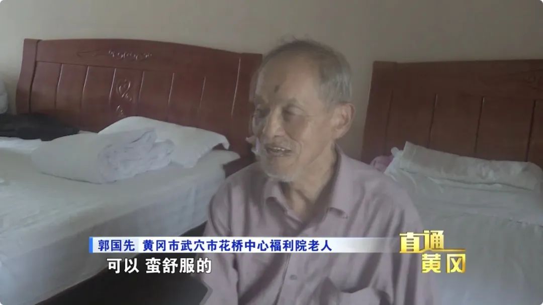 黄冈市武穴市花桥中心福利院老人 郭国先:可以,蛮舒服的,在这里三餐都有人送给我吃。