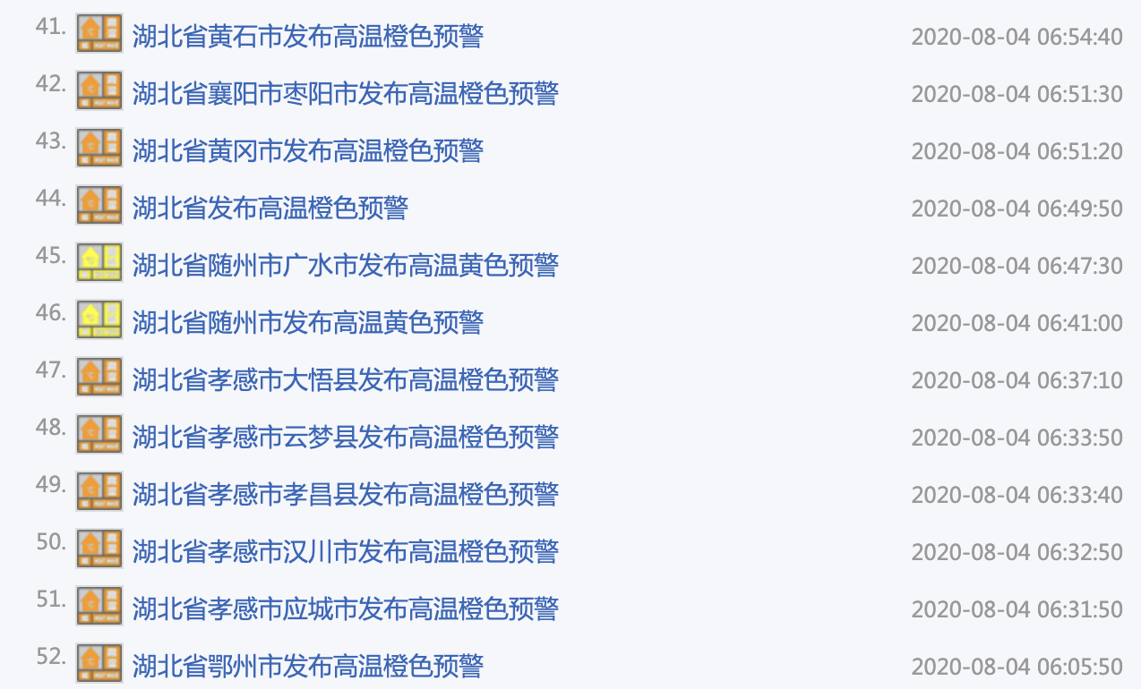 截至8点01分,湖北今日已连发超50条高温预警,省内大部分地区气温将升至37℃以上,局部甚至高达39℃。