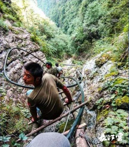 2018年2月,驻村的尖刀班在朝东岩半腰的岩洞里发现了水源,从攀着绳索爬进岩洞做引水的前期工作,到连接水源和洞口的一公里距离,再到打通水源地到村里的悬空管道,最终盼到一股清泉从水管中喷涌而出,驻村工作队和村民一起,花了整整8个月。