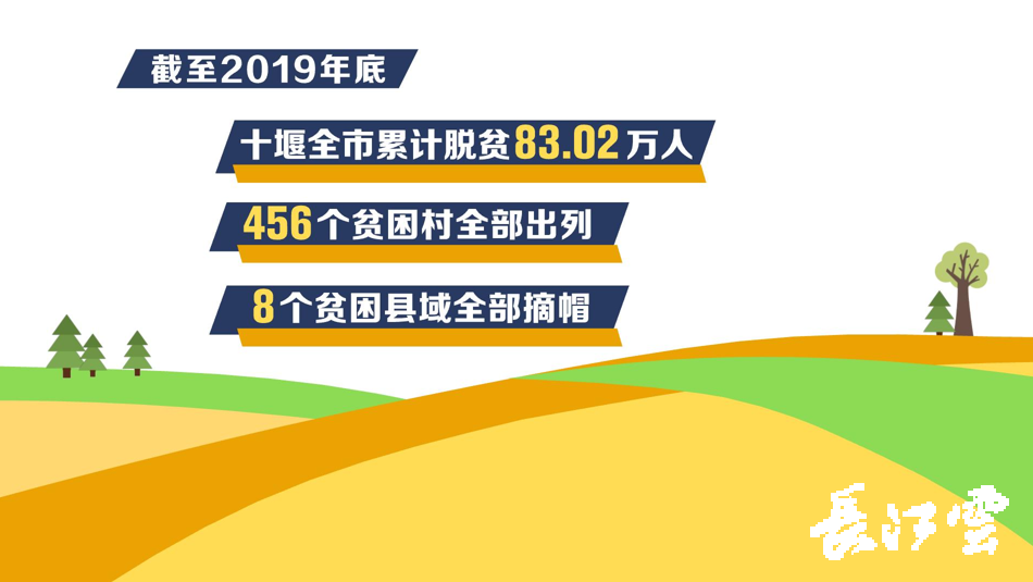 截至2019年底,十堰全市累计脱贫83.02万人,456个贫困村全部出列,8个贫困县域全部摘帽。