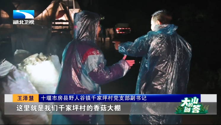 十堰市房县野人谷镇千家坪村党支部副书记 王泽慧:这里就是我们千家坪村的香菇大棚 ,请你今天晚上来帮忙采香菇。