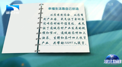 从药农到药企,从药商到产业园,我见证了金刚藤这味药材的价值变化,也见证了通城药材产业发展的规模和信心。通城的药材加上油茶、生猪和茶叶四大扶贫产业,共带动30097人脱贫。我们相信,找到了适合自己的扶贫之路,通城人民的小康生活会更加幸福。