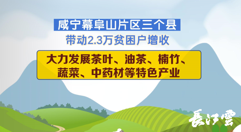 咸宁幕阜山片区三个县,靠大力发展茶叶、油茶、楠竹、蔬菜、中药材等特色产业,就带动了2.3万贫困户增收。这个数字什么概念呢?