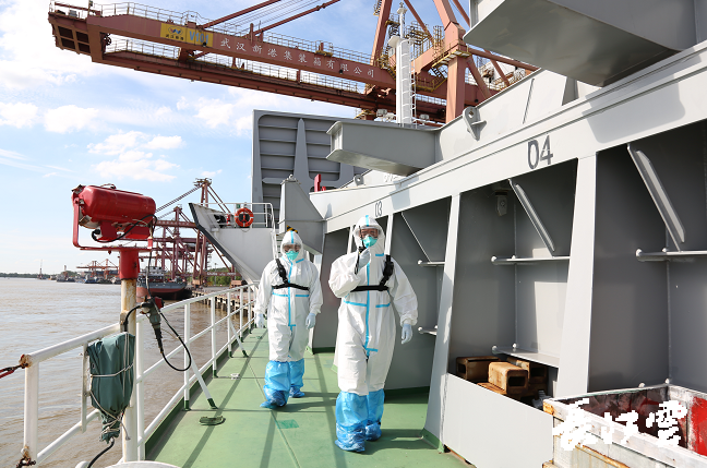 “近期,进口就是些机械设备零件,出口还是以防疫物资和生活用品为主。”执勤队科长缪晶站在船舱边,用手指着船体舱室。17个船员和2个执勤民警没有多余的话,按照规定动作运行,用冷静对抗舱外甲板这逼近50多度的燥热高温。