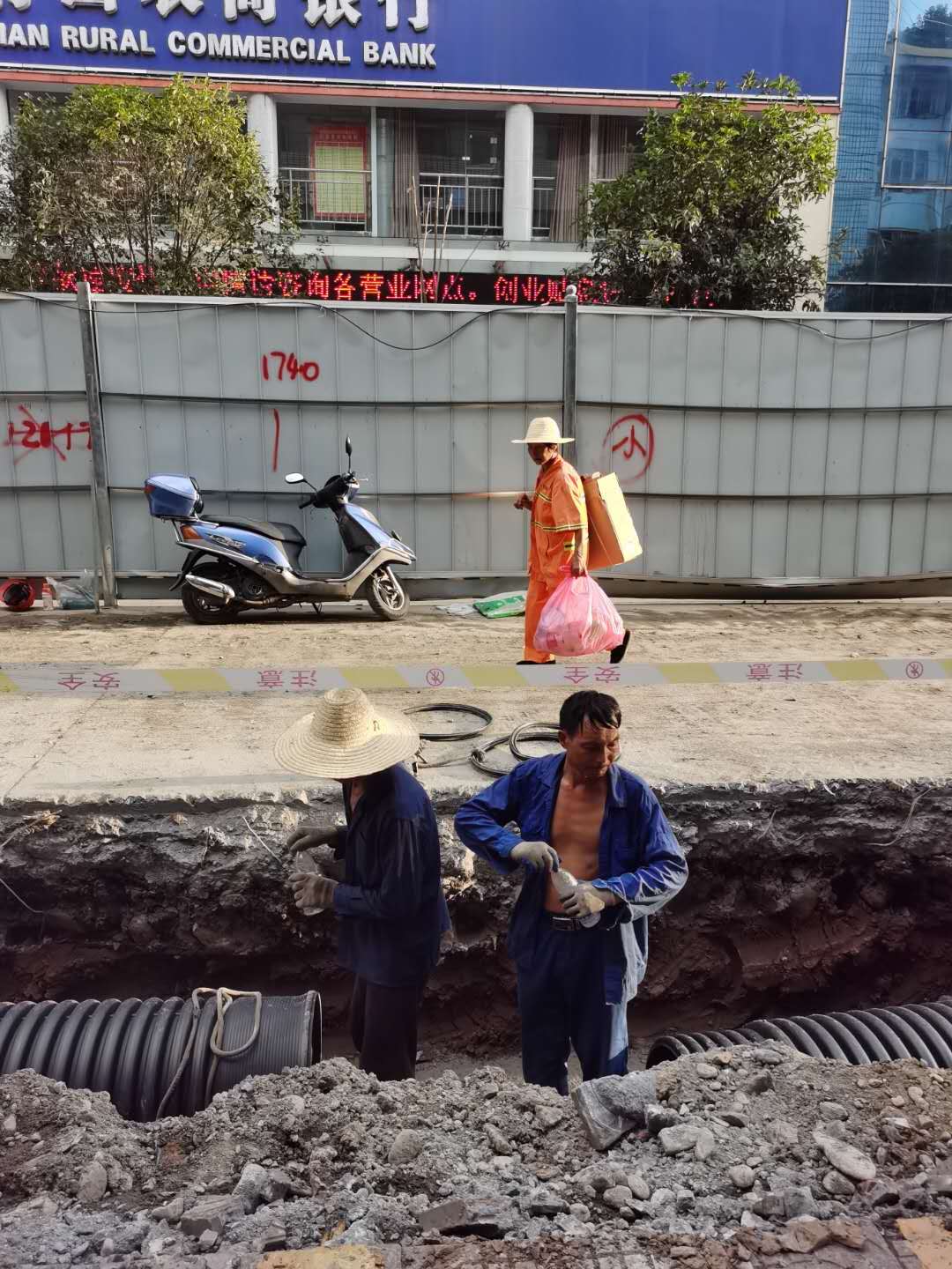 夏日炎炎,热浪滚滚,鄂西北秦巴山区开启了“烧烤”模式。但在竹山城区正在改造提升的人民路上,却有一群头顶烈日在高温下默默用汗水修建人民大道的建设工人,他们在露天地面赶着工期高温作业。