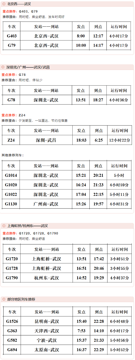 工作人员利用休班时间认真了解武汉及湖北的热门景点、美食和风土人情,在列车上为有需要的旅客做介绍,担当一名流动的列车“导游员”。到站后,车站安排专人提供出站引导服务,对重点旅客采取帮扶措施,方便旅客安全顺利出站。