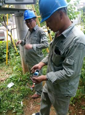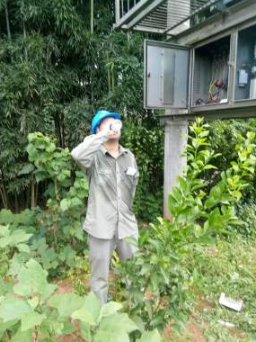 13时16分,车子刚停在村头,村民立马围了过来,争着述说故障发生时的现象,焦急的询问什么时候能恢复送电。付群方安抚好用户的情绪,勘查完故障现场才发现,原来是配电箱里装设的载波器接头受高温影响,绝缘损伤,造成相间拉弧短路,引起集中器爆炸。确定好抢修方案后,付群方随即填好了票单上的停电措施及接地线装设位置。陈青松和张远金做好安全防护着手抢修。