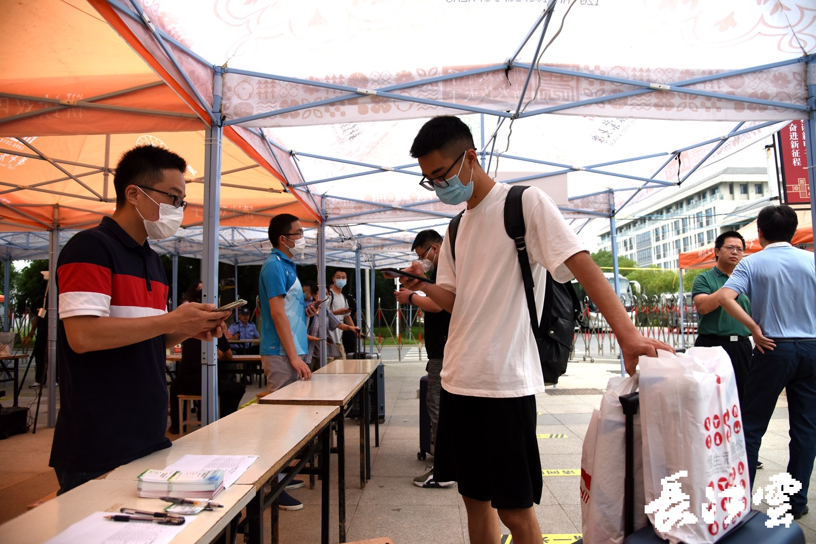 记者在华中农业大学西门看到,为了保证大家的安全,出入学校的通道分为学生返校专用通道和教职工通道,学生进入校园前,除了亮码测温外,还携带了一张返校证明,门口有老师进行登记。天气炎热,同学们都拎着行李箱,为了让大家尽快回到学生宿舍,学校贴心地安排了摆渡车等候。学生们表示拿一张票可以免费坐校车,不用花钱,觉得学校很暖心。