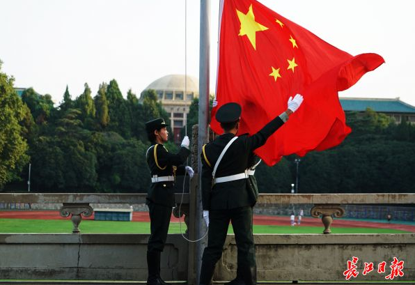 今晨(8月24日6时50分),五星红旗在武汉大学行政楼前冉冉升起。秋季武汉地区高校开学拉开了序幕。