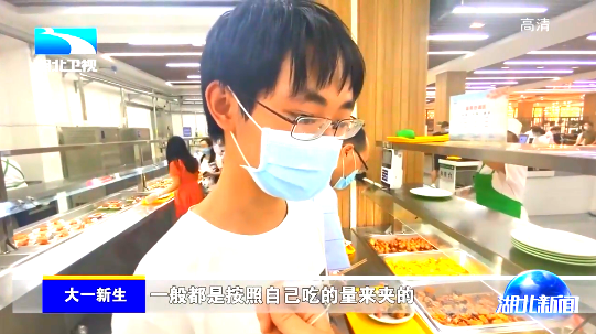 大一新生:“我喜欢各种菜都夹一点,营养比较均衡点,一般都是按照自己吃的量来夹的。”