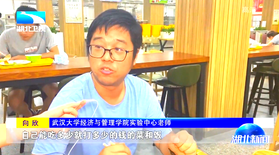 武汉大学经济管理学院实验中心老师向欣:“尽量能吃干净就吃干净,能吃多少就打多少的钱的菜、饭,怕吃不饱饭可以多打一点、菜适量一点。”
