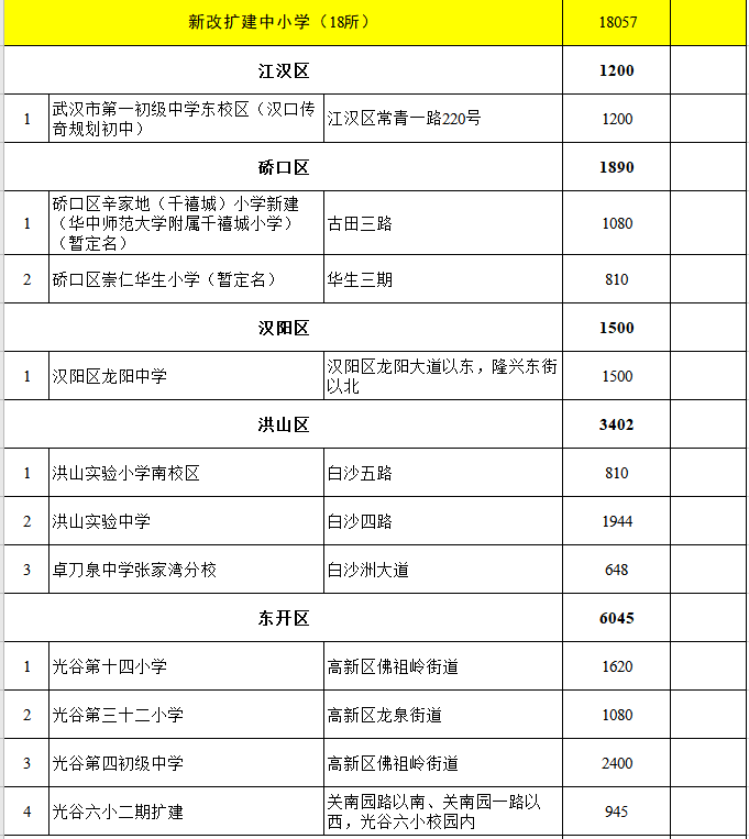 其中:全市预计有45所新改扩建的公益普惠性幼儿园投入使用,新增入园学位11520个;18所新改扩建的中小学投入使用,新增入学学位18057个。将极大地缓解武汉市部分地区存在的学龄前幼儿“入园难、入园贵”矛盾和适龄儿童、少年就近入学难的矛盾。