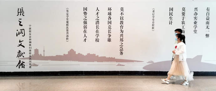 与会嘉宾参观了张之洞文献馆。张之洞文献馆位于武汉科技大学黄家湖校区图书馆一楼,文献馆进门处呈现《筹定学堂规模次第兴办折》《重定学堂章程折》,这是张之洞奏章内的文字。文献馆内,错落有致地摆放着各类文献资料,墙上分为生平、著作、交通、工业、市政、交通、军事等七个板块,以图片、文字和视频展现张之洞主政湖北时期的主要事迹。