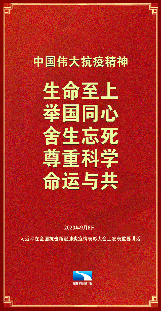 9月8日上午,全国抗击新冠肺炎疫情表彰大会在北京人民大会堂隆重举行。习近平向国家勋章和国家荣誉称号获得者颁授勋章奖章并发表重要讲话。在讲话中,习近平就伟大抗疫精神进行了深刻阐述。他说,在这场同严重疫情的殊死较量中,中国人民和中华民族以敢于斗争、敢于胜利的大无畏气概,铸就了生命至上、举国同心、舍生忘死、尊重科学、命运与共的伟大抗疫精神。