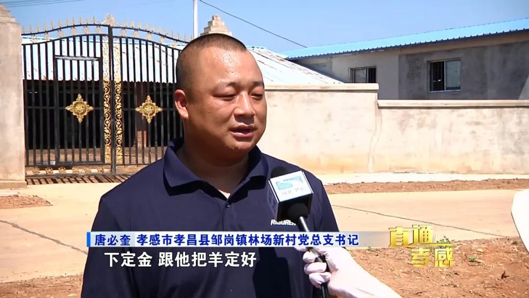 孝感市孝昌县邹岗镇林场新村党总支书记 唐必奎:村一级、镇一级、县一级都有帮忙,组织单位就是众人出力,到了秋冬别人都会提前过来下定金,把羊定好。