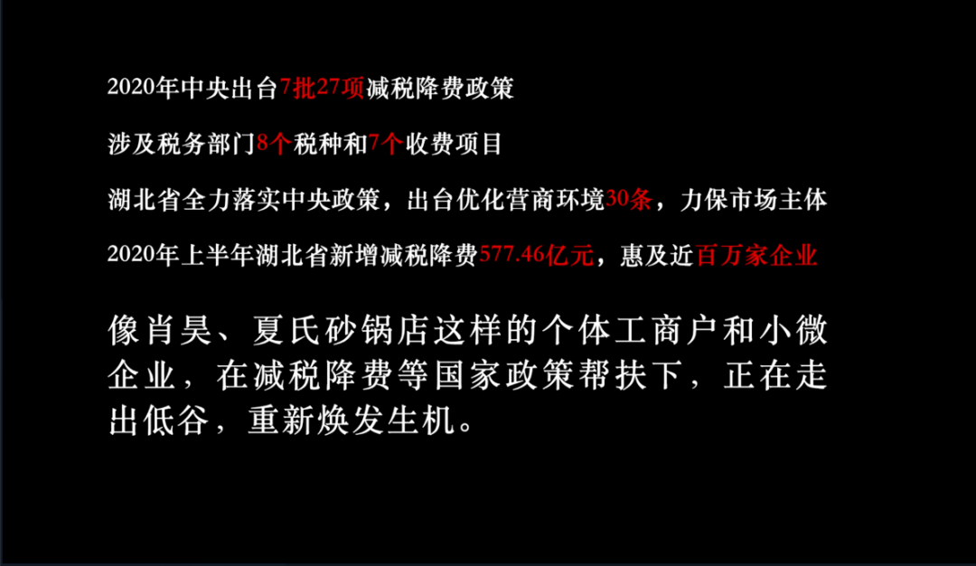 “现在店面租金和员工工资,一个月下来,经济压力还是有点大,最困难的时候还是要同舟共济,坚持不裁店员。国家政策这么好,估计再过一两个月就能好一些了。”夏氏砂锅不裁员的底气和信心,来源于国家减税降费等一系列的政策。“我们店铺,今年一年都不再交增值税及其他附加税,仅增值税这一项我们可以省下几十万。感觉担子一下子轻了不少。”