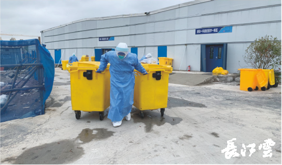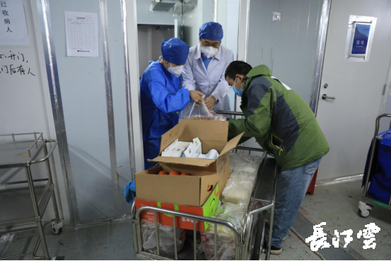 除了院区保洁消杀,物业服务人员忙碌的身影还出现在垃圾转运、送餐送药、秩序维护、物业管家等各板块。在医院运营期间,他们共计清运生活垃圾28000余袋,医废垃圾46000余袋,送餐31万余份,受理各病区来电1400余次,帮助医患解决问题800余项,赠送慰问品600箱,代为采购生日蛋糕、生活用品等贴心服务100余次,与医护人员一道筑起守护生命的最后防线。