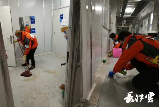 穿上厚重的防护服,戴上密不透风的护目镜,全副武装穿过缓冲间,进入污染区。为了能工作时间长一些,他们穿纸尿裤进场,衣服被汗水湿透,护目镜起雾视线模糊……这个曾经在雷神山医院里无数次出现的画面,不仅仅是医护人员的“特写”,也是雷神山医院物业人员的真实写照。