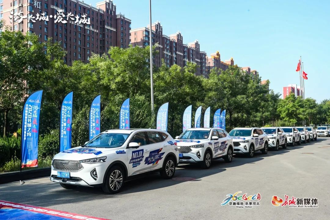 “3、2、1,启动!”倒计时结束,能量柱亮起,现场掌声雷动,“游长城 爱长城——2020长城之约•全国新媒体自驾游长城”活动正式启动,由全国新媒体人组成的长城之约•哈弗F7自驾车队,挥舞着队旗出发,开启一段精彩难忘的长城发现之旅。