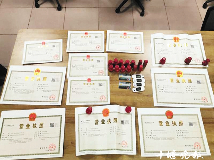 何为“八件套”?办案民警介绍,是指工商营业执照、公司公章、财务章、法人章、对公账户银行卡、U盾、对公账户结算卡、银行绑定电话卡。