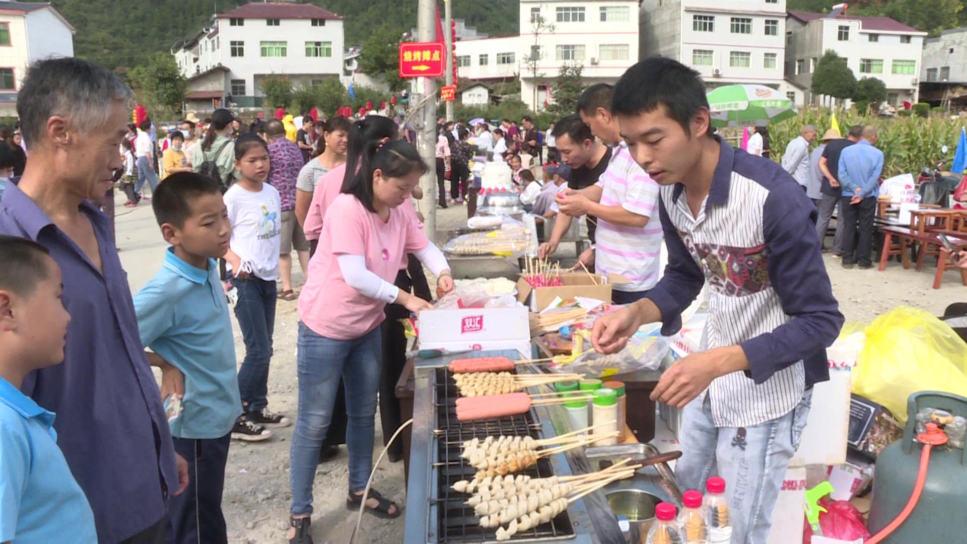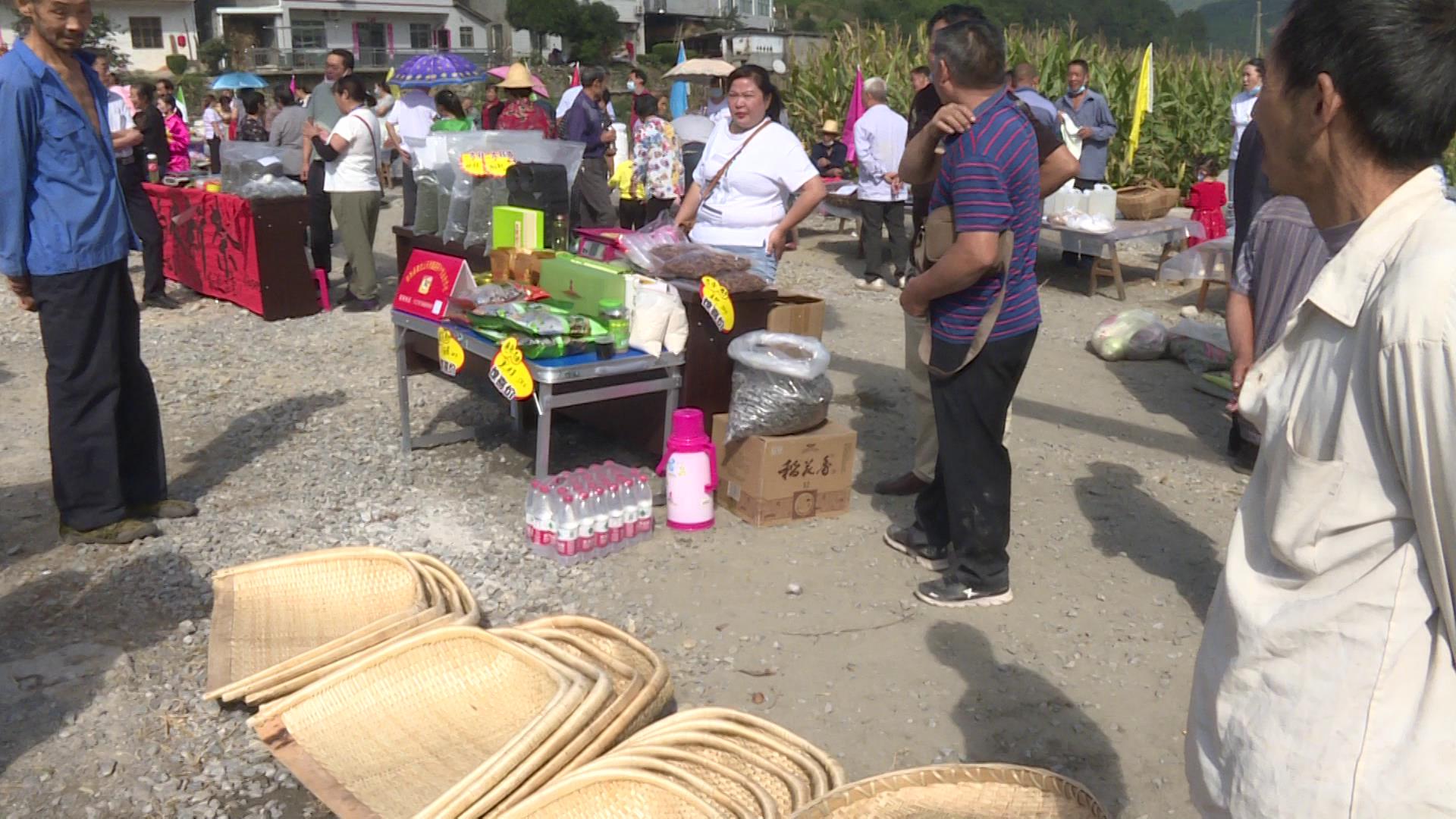 【农户:今天是丰收节 我们把农副产品带到石塔河村来卖 今天收入还可以 大概卖了2000多块钱】