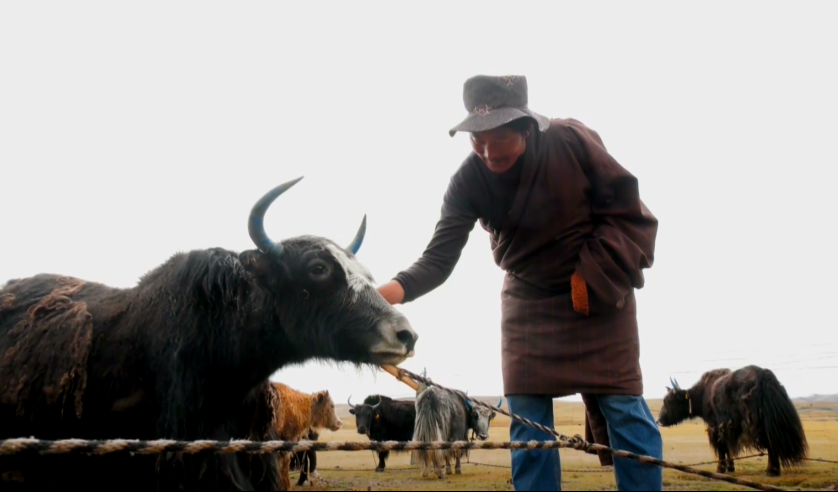 今年51岁的普次仁,是那曲色尼区地道的牧民,他说过去游牧式的养殖牦牛主要是自给自足,自己家守着两百多亩的草场,因为人手不足,也很难维护草场的健康生长。2017年普次仁一家被认定为建档立卡贫困户。为了帮扶贫困牧民改善生活、提高收入,2018年当地进行了生态移民搬迁,普次仁一家和另外十多户牧民从偏远的山上搬到了镇上。除了居住条件的改善,普次仁也见识到了牦牛养殖的新方法。
