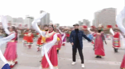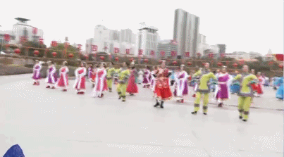 还有身着民族服装的居民在跳着欢腾的广场舞