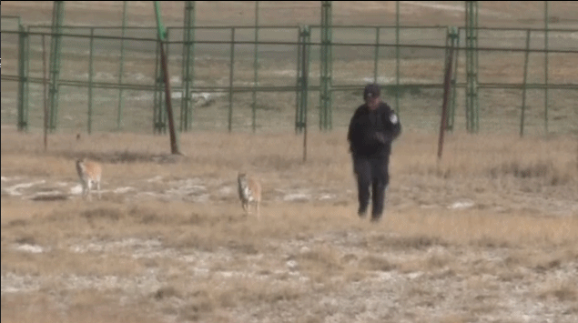 △可可西里•索南达杰保护站的工作人员和记者一起给藏羚羊喂奶