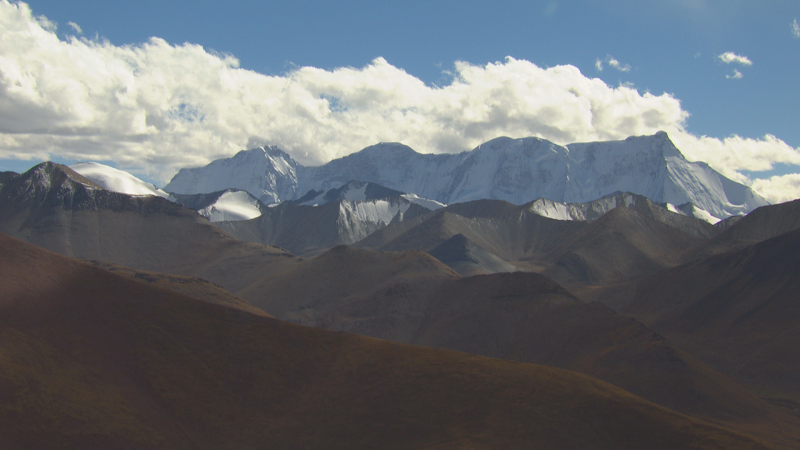 整个山脉有多座冰川,主峰念青唐古拉峰,海拔7162米,银装素裹犹如一匹神马,镶嵌有各种宝石的马鞍,受到藏族百姓的尊崇。