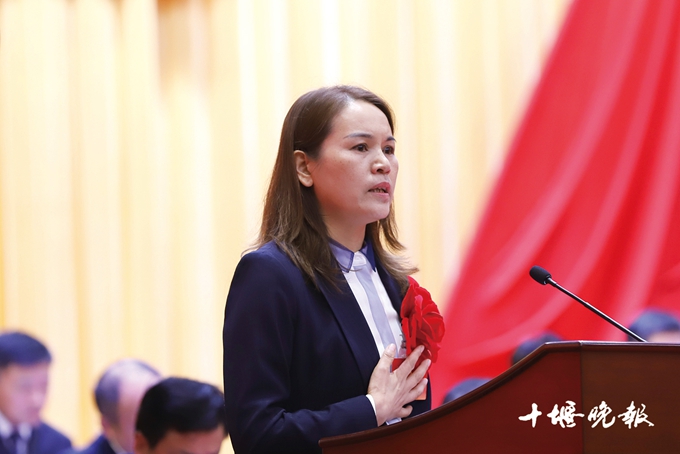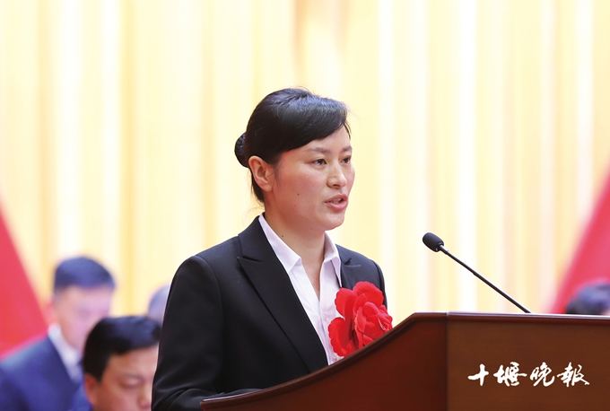 全市抗击新冠肺炎疫情优秀共产党员、茅箭区武当路街办三桥社区党支部书记陶群发言。