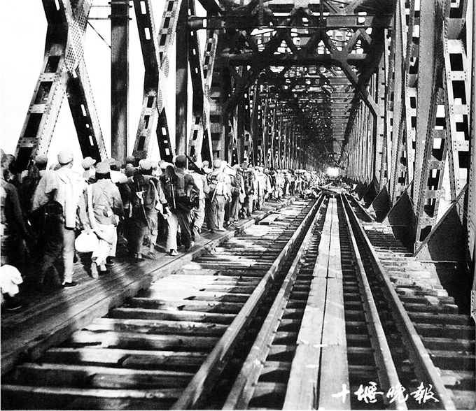 “天色越来越亮,我只觉得两只胳膊像断了似的酸痛,手脚都冻僵了,脑子也一阵阵发晕,仿佛大桥也跟着火车动起来。我多么想缓缓劲啊!不行,痛死也不能有这种可怕的念头。要顶住,我暗暗给自己鼓劲,要像真正的英雄那样经得住考验。当第十八列火车轰隆轰隆地从这道桥上冲过了江南岸,我才长长地松了一口气……”史阜民在《十八列火车》中这样写道。