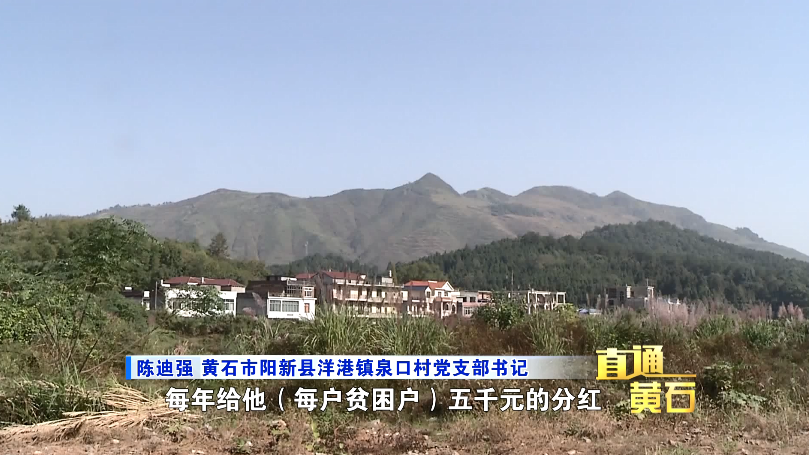 黄石市阳新县洋港镇泉口村党支部书记 陈迪强:利用每户贫困户五万元贷款入股,每年给每户贫困户五千元的分红。